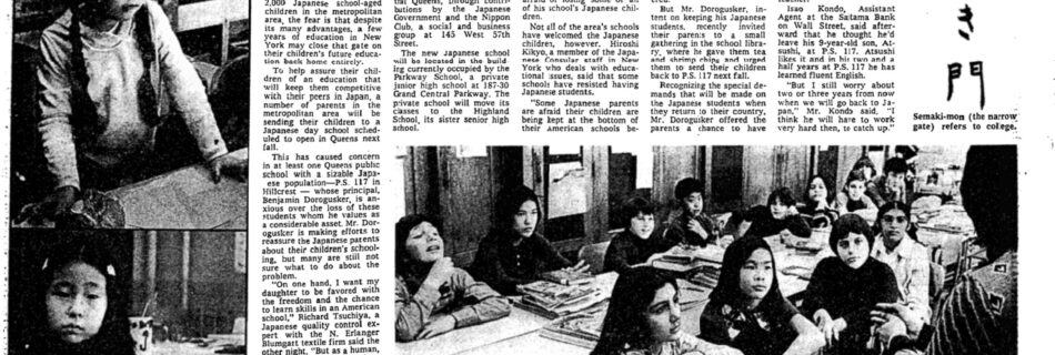 戦後に開校された「ニューヨーク日本人学校」は、1975年にクイーンズのジャマイカで開校しました。その数年前に、駐在者の子女への教育を行うために、日本クラブで始まった日本語教室が始まりと言われています。当時は、日本が高度成長期で日本に対する興味が高かったせいか、ニューヨークの現地メディアによる「ニューヨーク日本人学校」の記事が多くありました。ニューヨークタイムズ誌で紹介された記事を以下にまとめていま… [Read more...]